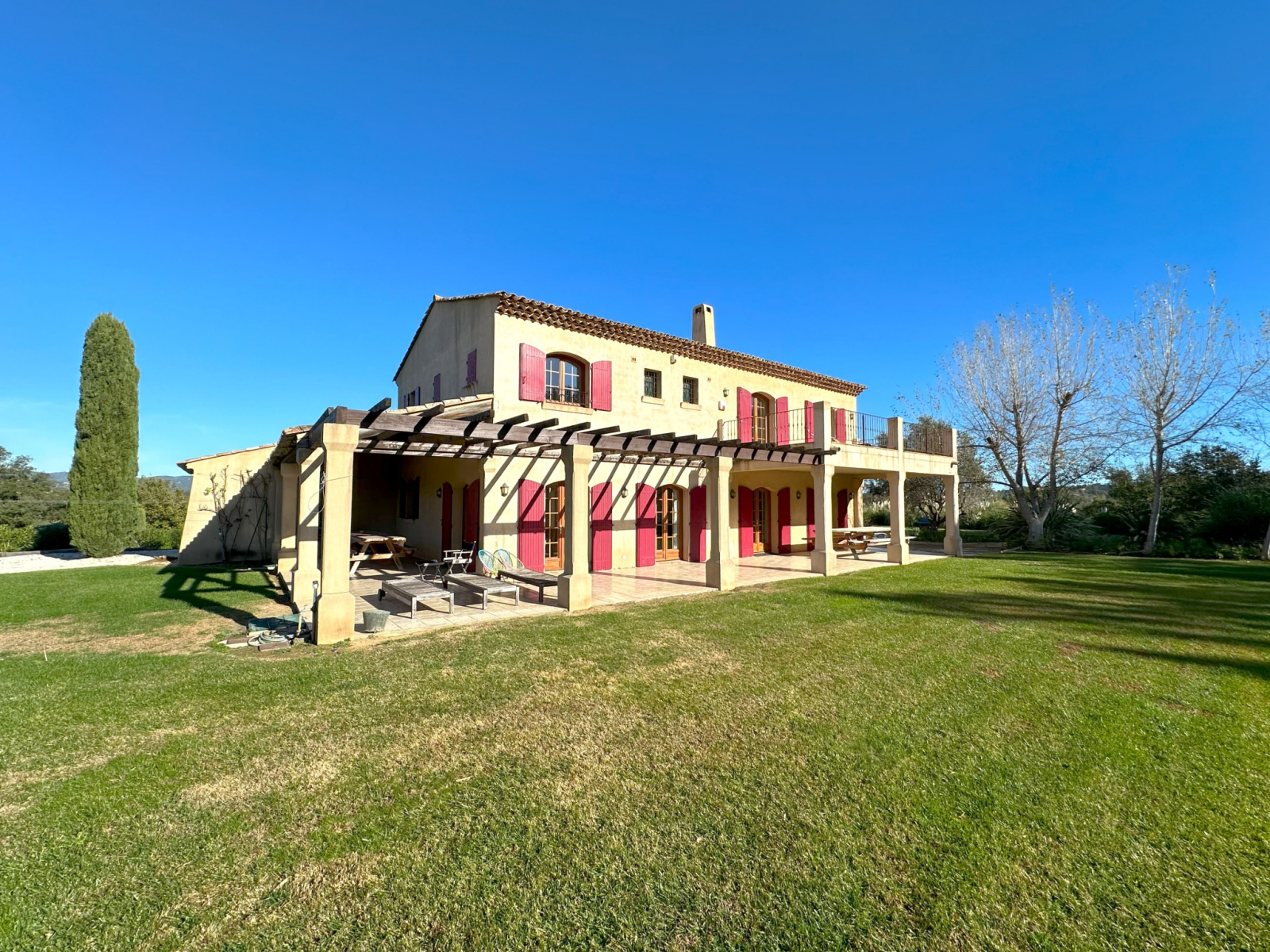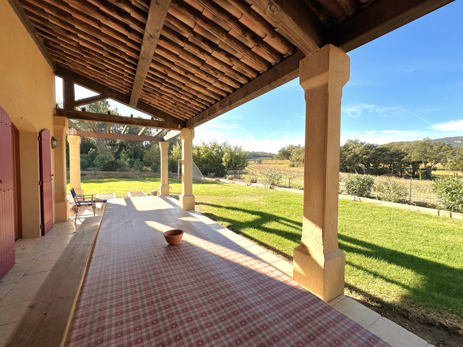 Cette maison de 250 m² offre un cadre exceptionnel avec un terrain paysagé de 9900 m². Nichée au cœur d'un environnement paisible à la campagne, elle bénéficie d'une vue imprenable sur les vignes et sur Grimaud. La propriété est en excellent état, offrant un niveau élevé de confort et de qualité. À l'extérieur, vous pourrez profiter d'une piscine et d'un pool house, créant ainsi un espace idéal pour se détendre et se divertir avec notamment un terrain de foot. L'intérieur de la maison se compose de six pièces au total, comprenant cinq chambres. Deux salles de bains et deux salles d'eau assurent un confort optimal pour les occupants. Les espaces de vie sont bien agencés, offrant des vues dégagées depuis l'intérieur de la maison. Un grand garage ajoute une commodité supplémentaire, offrant un espace pour deux grands véhicules et permettant de stocker moto ou scooter. Située dans un quartier calme, cette propriété proche de la nature offre un cadre de vie idéal pour ceux qui recherchent la sérénité et l'intimité dans un environnement enchanteur.