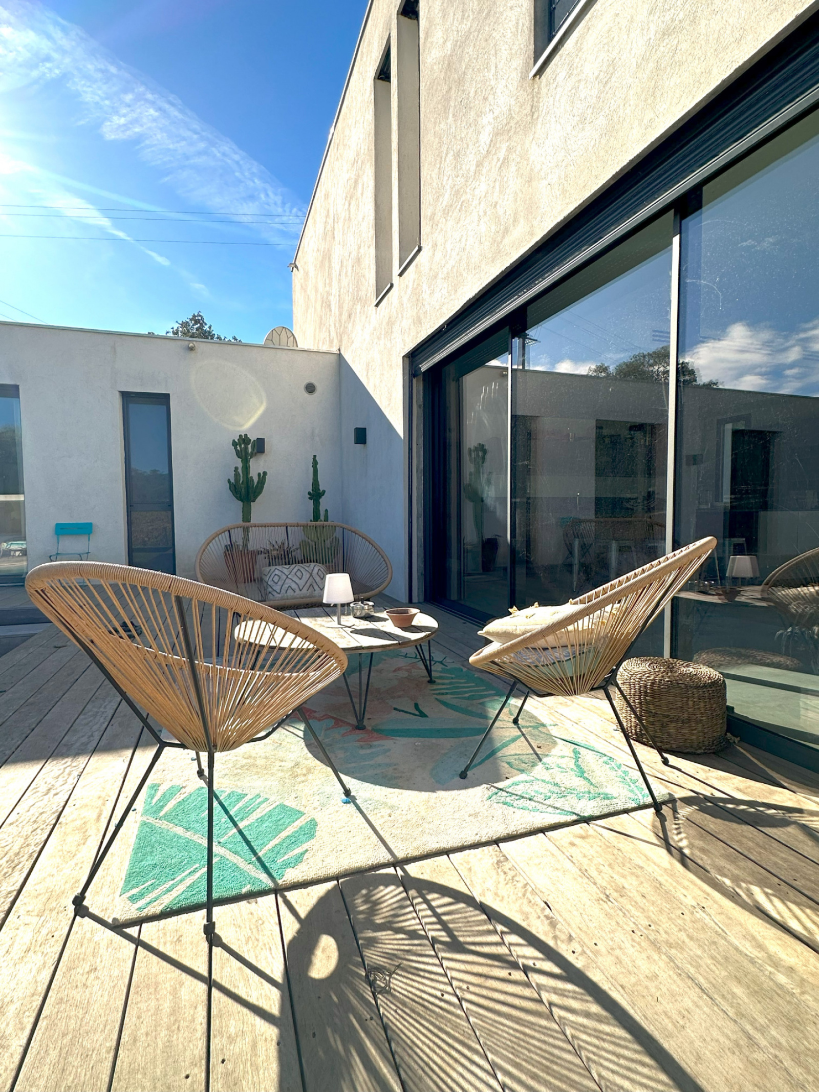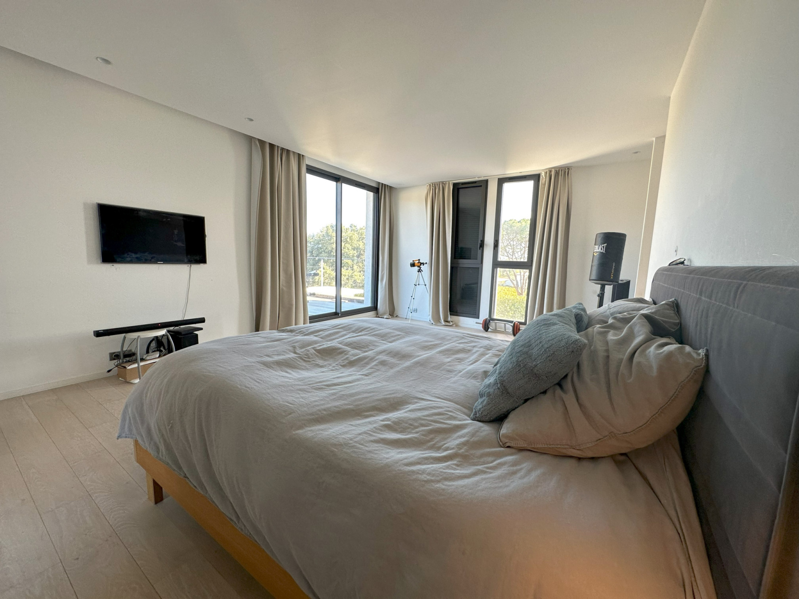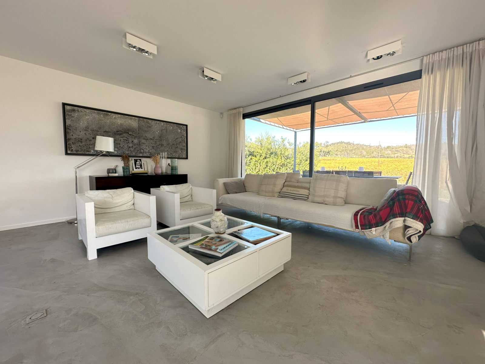 Entre le village de Grimaud et Cogolin, maison récente de style contemporain de 240 m² située au calme avec vue imprenable sur les vignes et le château de Grimaud. Sur un terrain plat de 2000 m² cette villa se compose au rez-de-chaussée d'une entrée, d'une grande pièce à vivre lumineuse avec cuisine ouverte, d'une buanderie, d'un garage et de 3 chambres avec chacune leur salle d'eau.À l'étage, se trouve une chambre de maître, avec salle d'eau, dressing, wc et une grande terrasse.Piscine, pool house, nombreuses terrasses et une piste de boules.